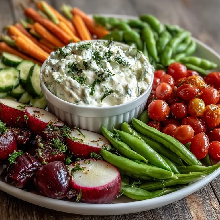 Adapt this board by incorporating other seasonal vegetables such as asparagus tips, blanched green beans, or sliced bell peppers to add variety and color. Optional garnishes like microgreens and crumbled feta cheese introduce extra freshness and depth.